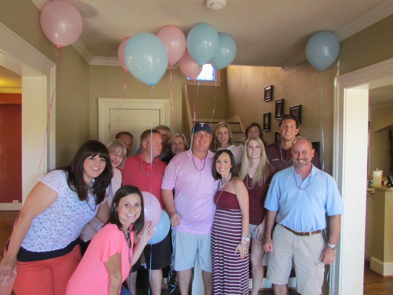 As guests arrived, they voted for team pink (two girls), team blue (two boys), or one of each and took beads. Special thanks to all of our friends and family that joined us: Mom, Dad, Laura, Billy, Rachel, Dom, Matt, Cortney, JoAnna, Peter, Ava, Aubrey, Doll, Al, Ely, Kyle, Van, Courtney, Jeff, Erin, Anne, Tyler, Michelle, Lindsey, Charlie and Kathy.